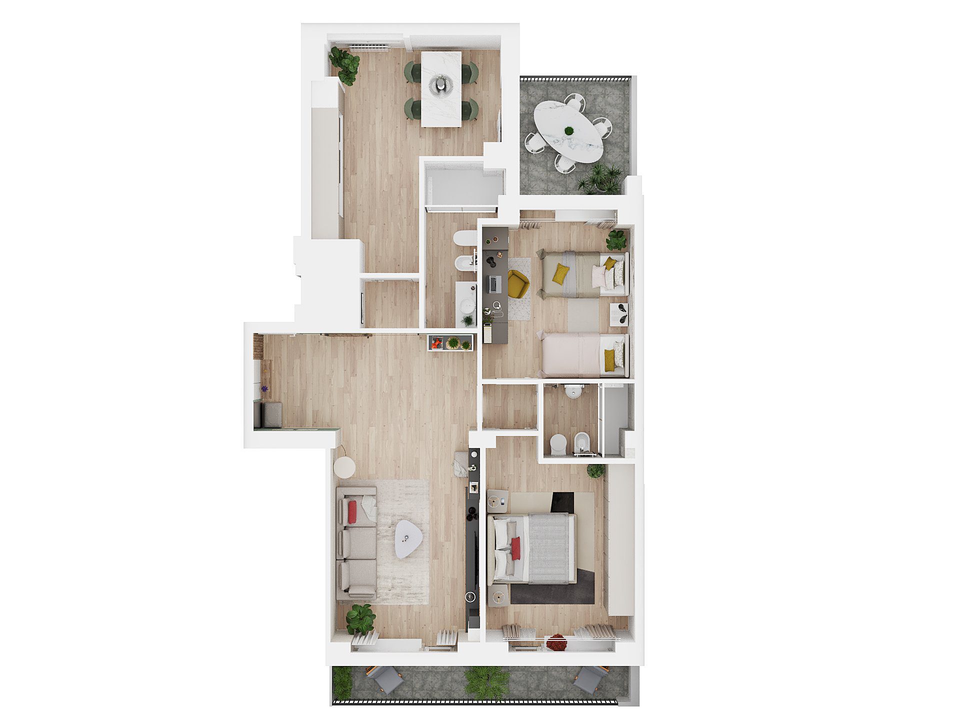 Con il Pacchetto Trilocale otterrai un servizio completo e conveniente per la rappresentazione ideale del taglio di appartamento selezionato.