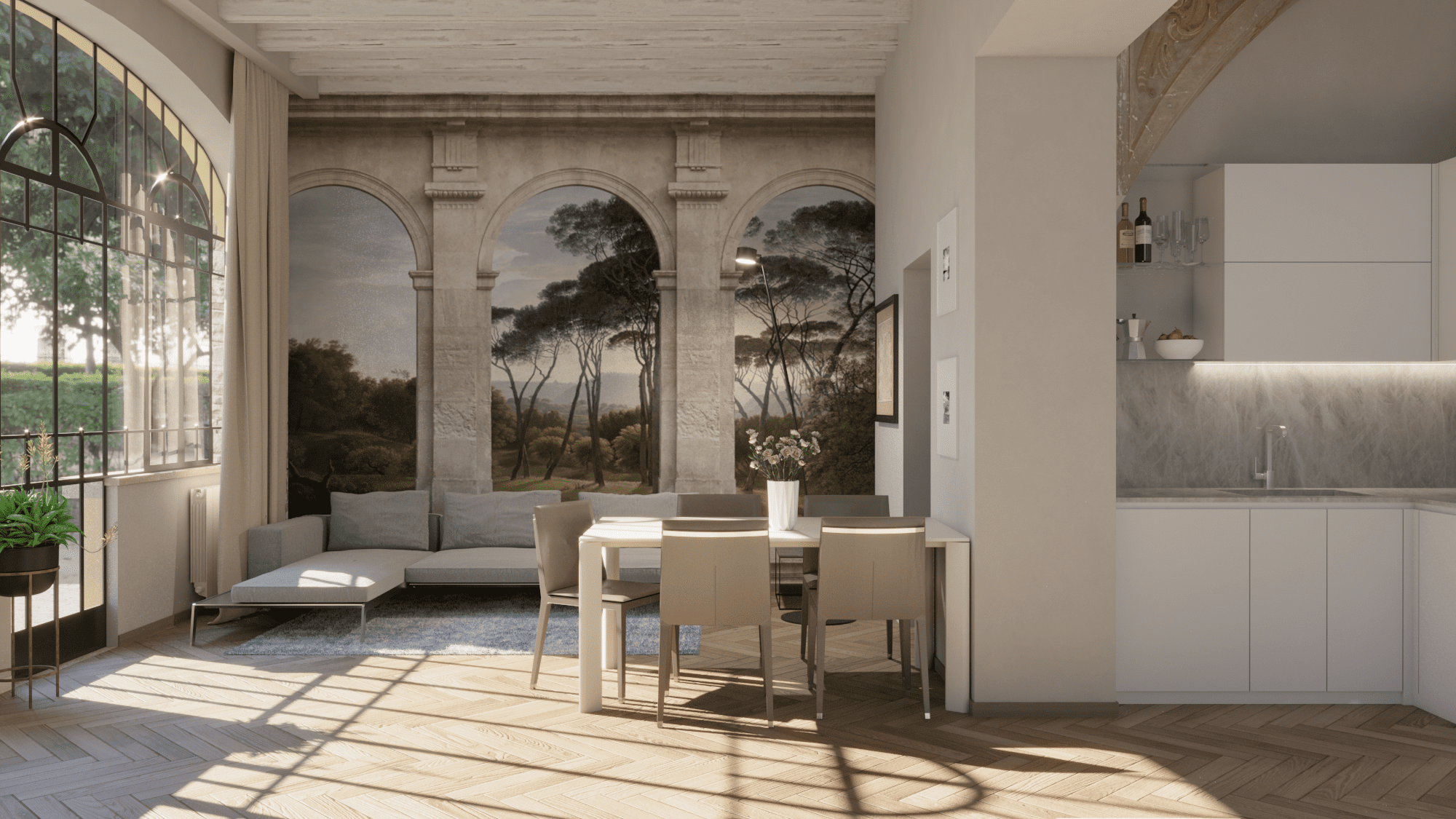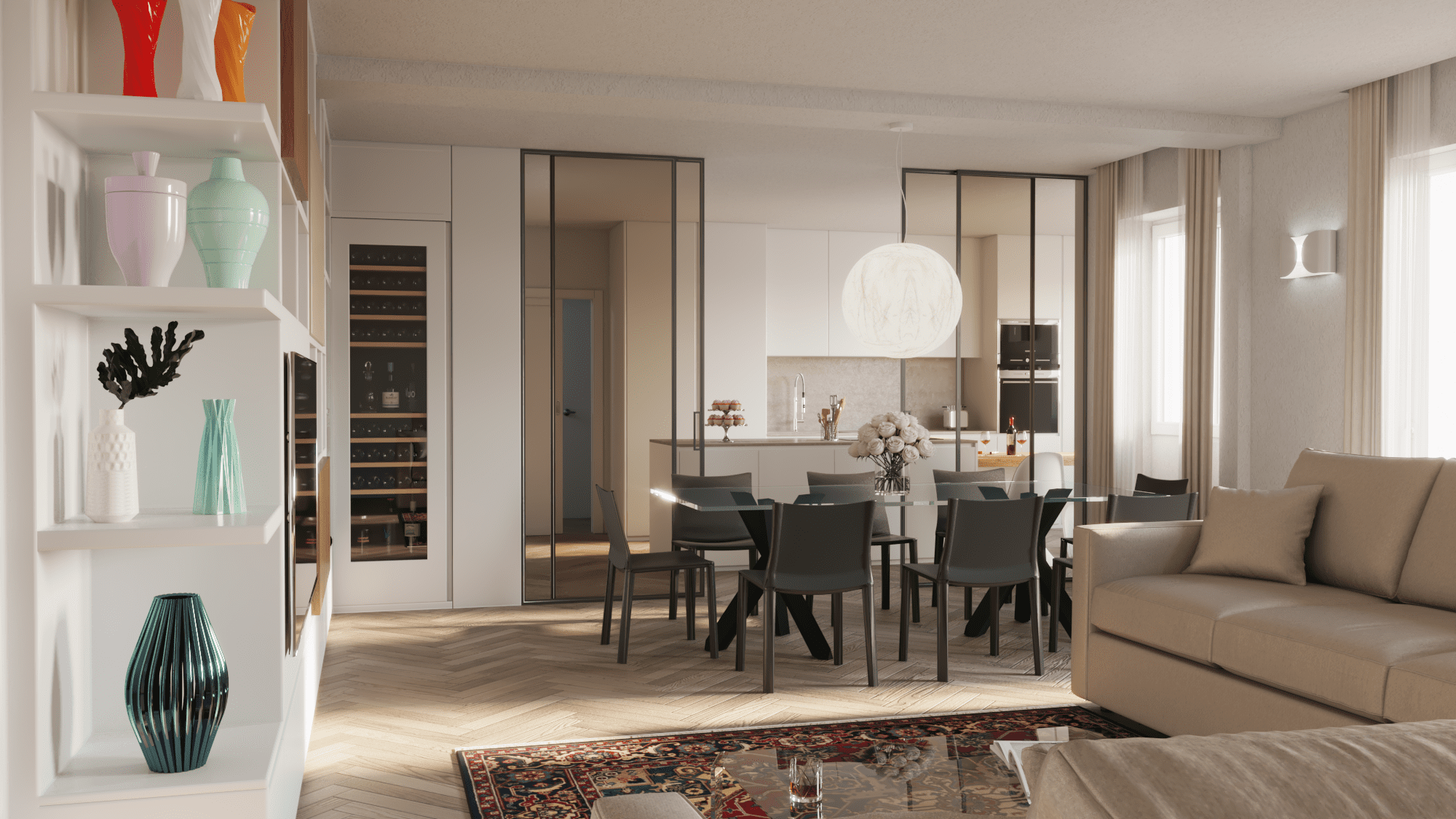 Utilizzo software come SketchUp, V-Ray e D5 Render per trasformare idee e progetti in visualizzazioni realistiche.