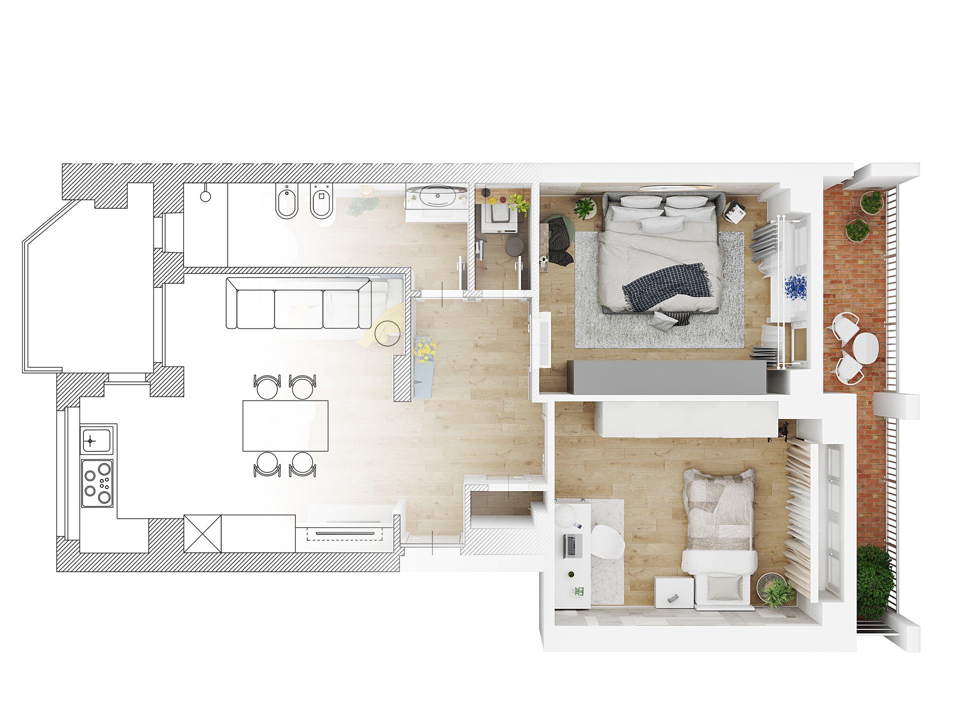 La tua comunicazione visiva efficace e di qualità grazie alle Planimetrie 3D arredate.